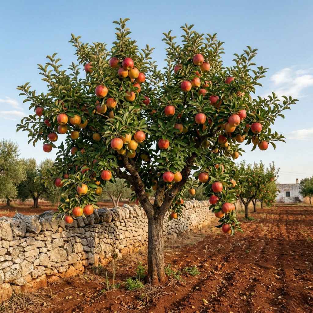 Il Melo (Malus domestica), sebbene di origini più settentrionali, offre varietà moderne e antiche che mostrano una straordinaria adattabilità alle diverse condizioni del Salento. Questa pianta, apprezzata per la sua generosa fioritura bianca o rosata a primavera e per i suoi frutti autunnali, può essere coltivata con successo tra Lecce, Brindisi e Taranto, specie se posizionata in aree riparate o nei giardini irrigui. Inserire un Melo nel proprio spazio verde è un modo per coniugare l’utilità di un frutteto con la bellezza di un “paesaggio rurale” in continua evoluzione, arricchendo la biodiversità della “macchia mediterranea”.